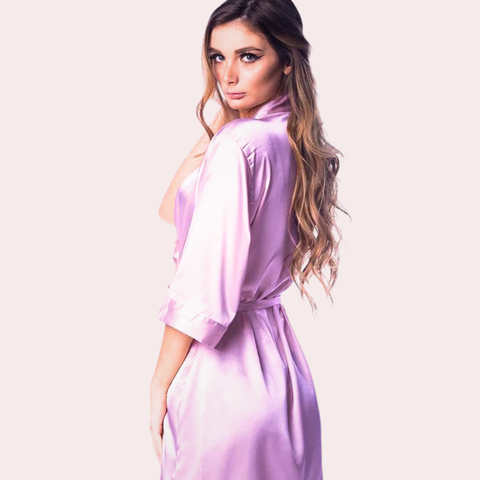 Here is our beautiful Lavish Silk Robe, which is the epitome of luxury and style. Elevate your nights with this luxurious piece, which was carefully made to please your senses and leave a lasting impression. Enjoy the luxurious touch of pure silk, which was carefully picked for its exceptional softness and shine. This robe hangs loosely, giving you an airy shape that brings out your natural beauty. The soft, silky feel of the fabric against your skin makes your evening routine even more enjoy...