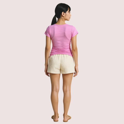 Elevate your everyday style with the Rosewood Pintuck Pleated Cotton Top. Crafted from soft, breathable cotton, this top features a flattering A-line silhouette with delicate pintuck detailing on the bodice for a touch of sophistication. The round neckline is complemented by a partial button placket, while the 3/4 sleeves offer comfortable coverage. Designed in a rich rosewood hue, it's perfect for both casual and semi-formal occasions. Pair it with tailored trousers or jeans fo...